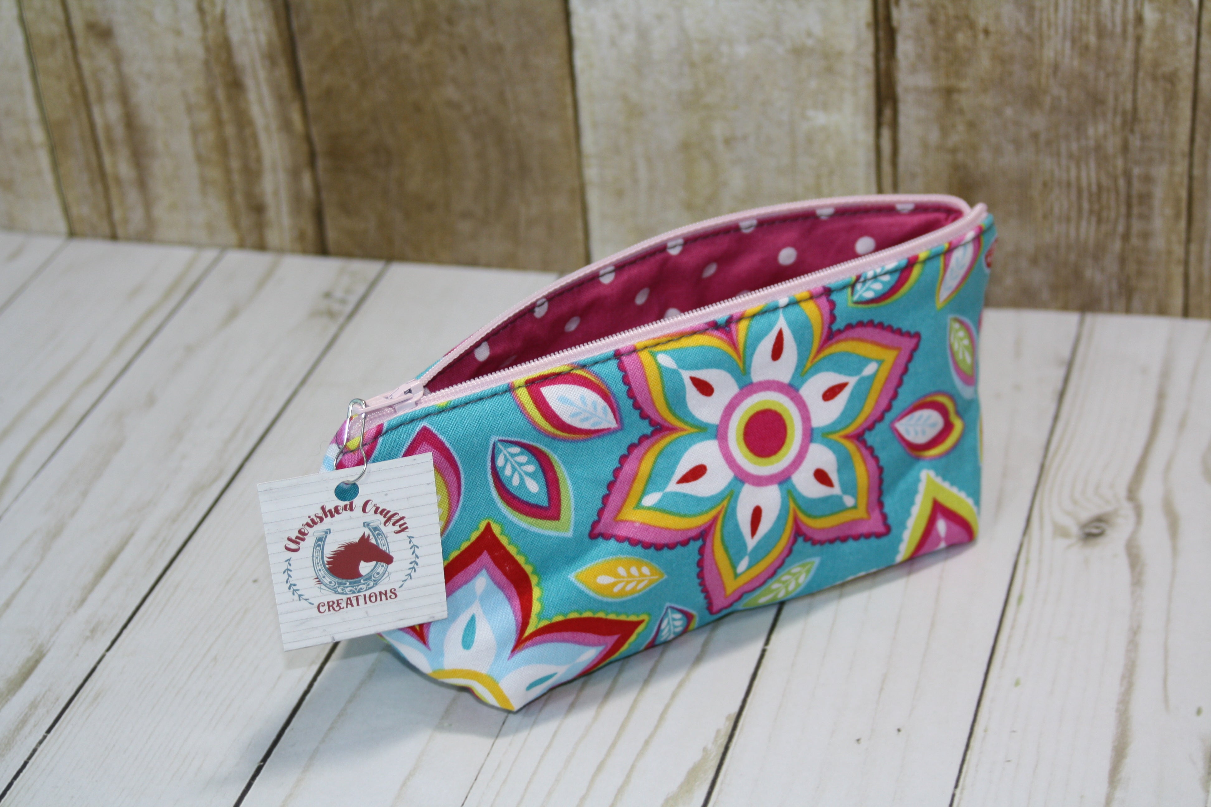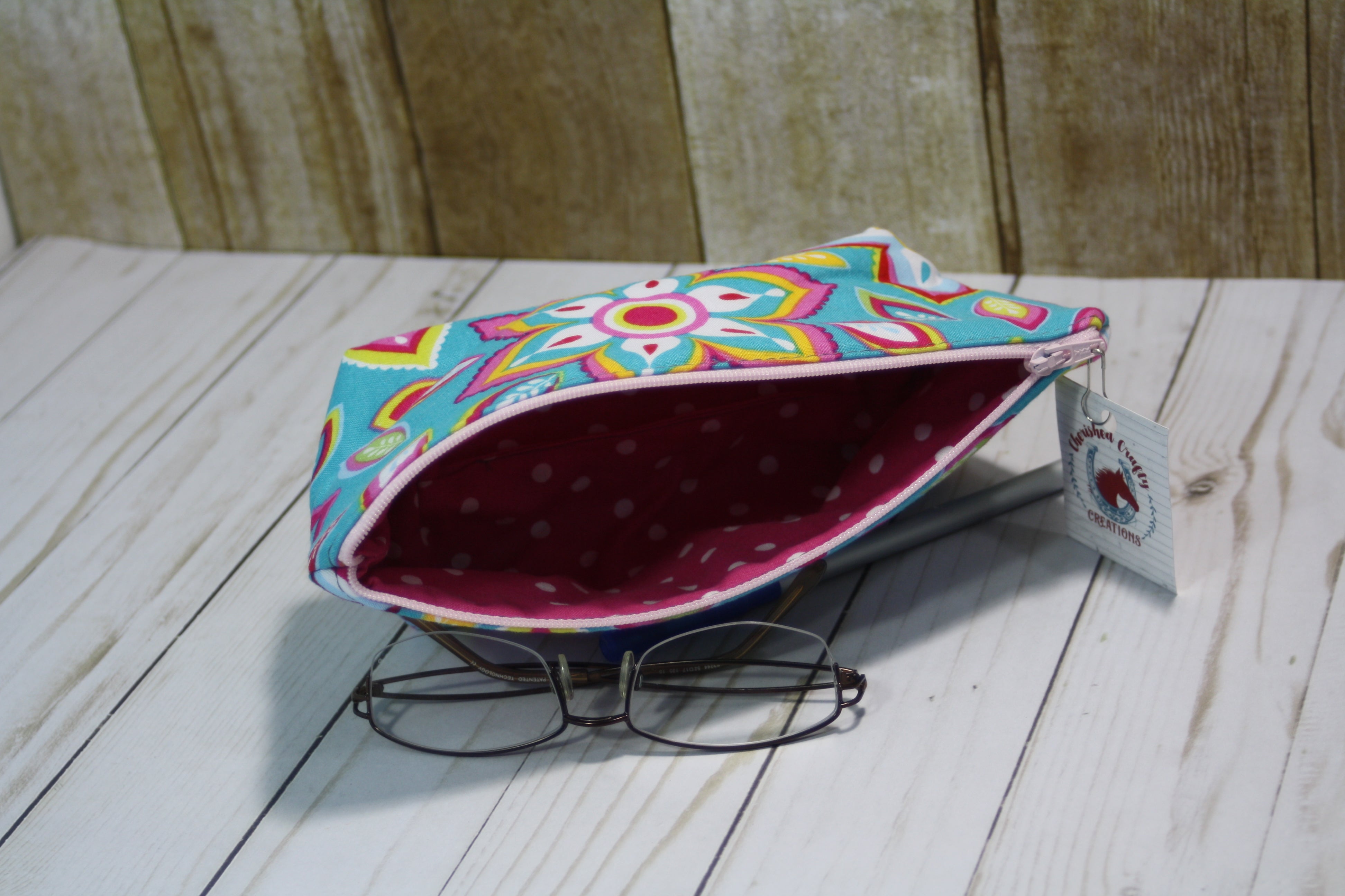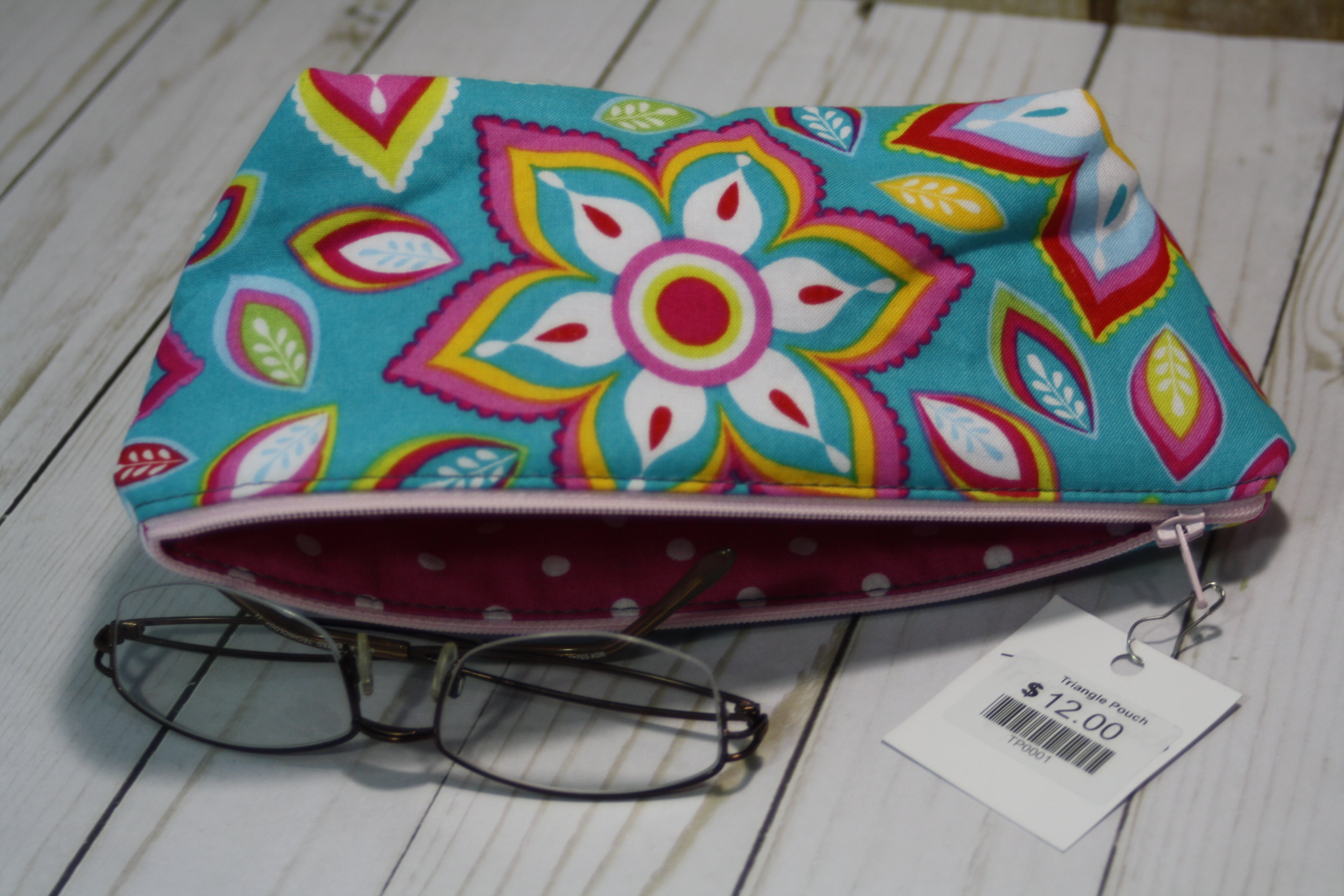 Handcrafted Medium Boxy Bottom Zipper PouchThis pouch is lightly padded and large enough to hold unfolded cash, checkbooks, pens, and more! Fill it up and toss it in your purse or...