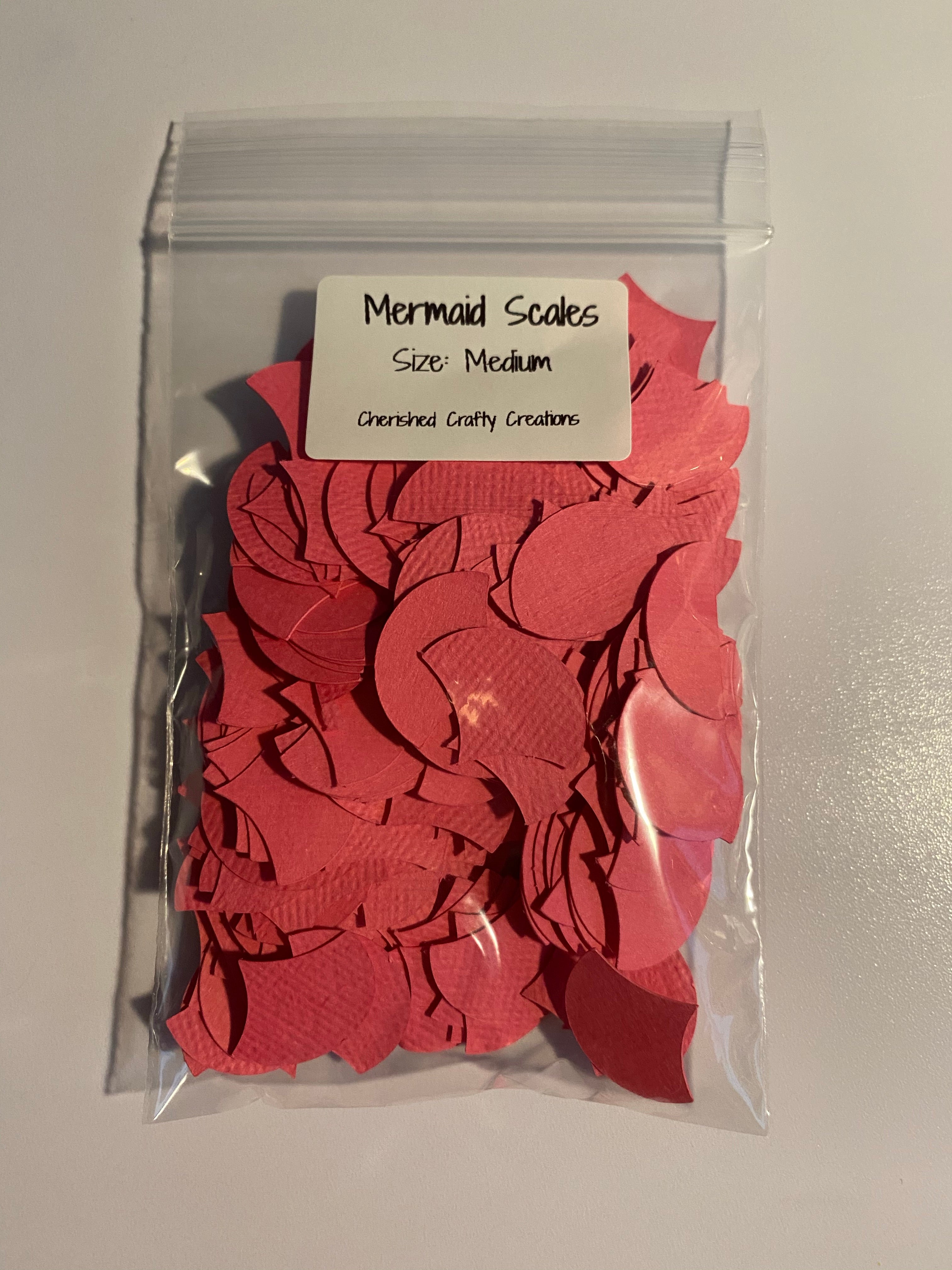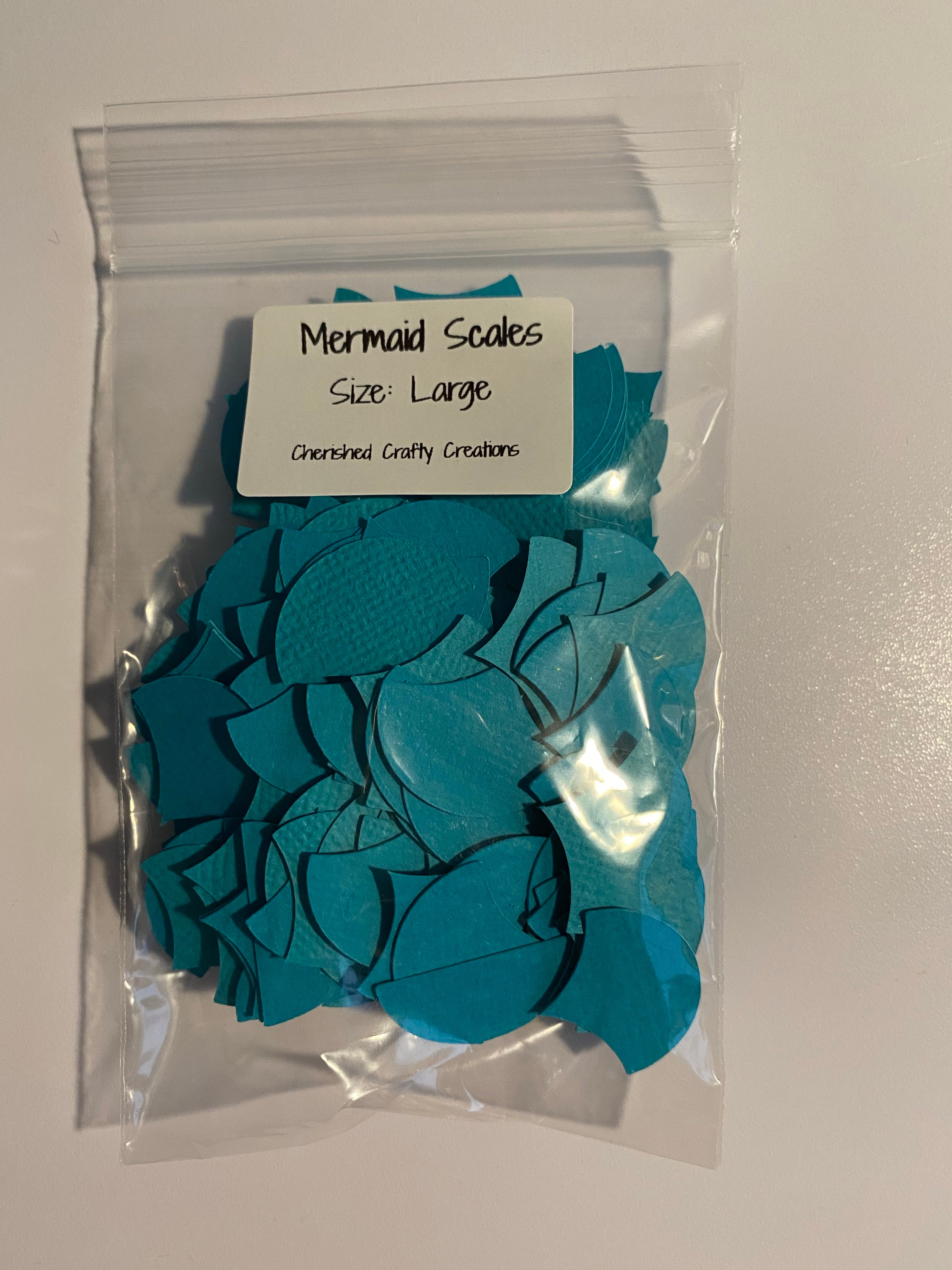I offer 3 different sizes of mermaid scale cut outs. Medium (approximately 250 scales), Large (approximately 200 scales), and XL (approximately 170 scales). I typically use a mix between Medium and Large for my tumblers.