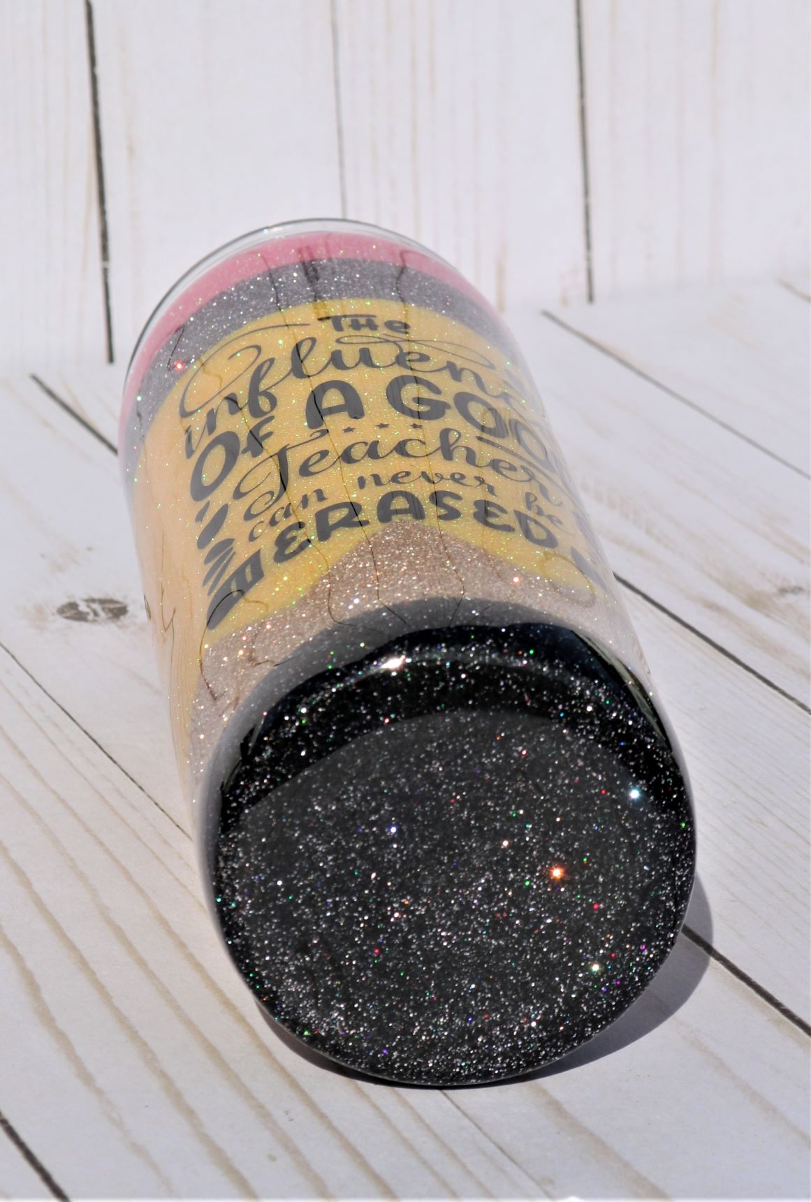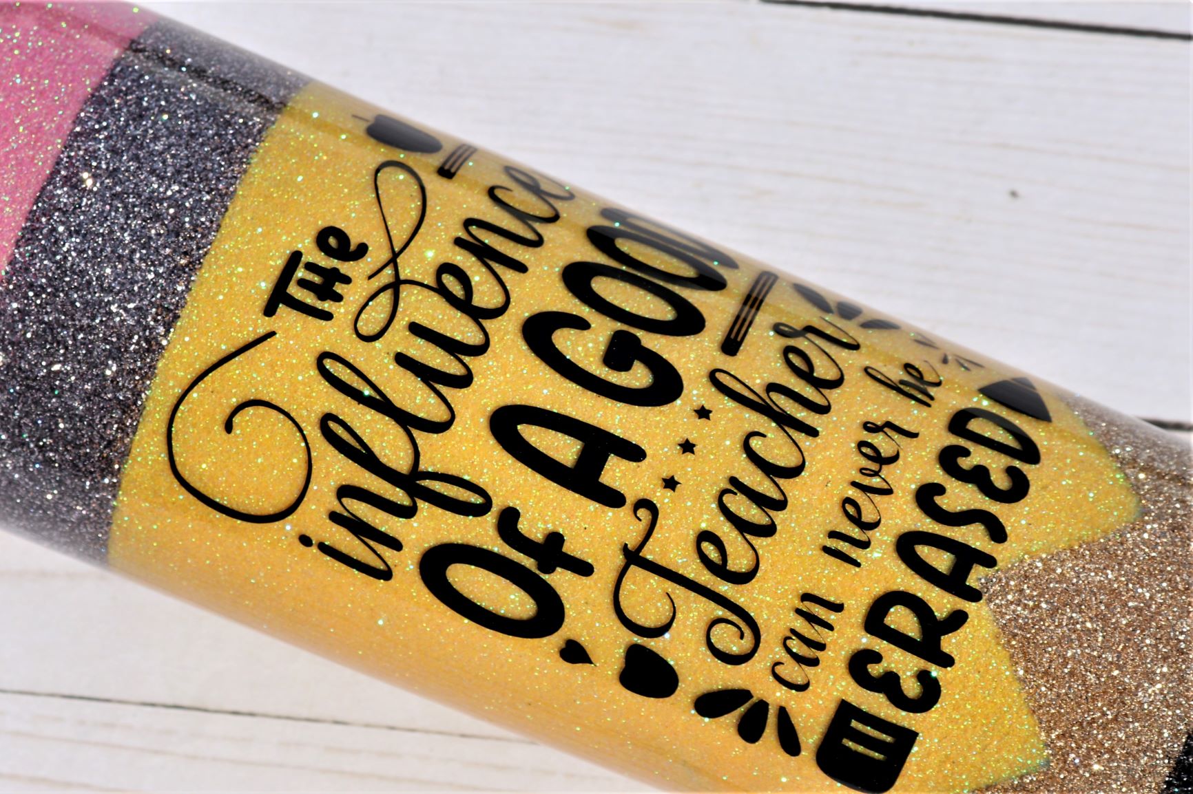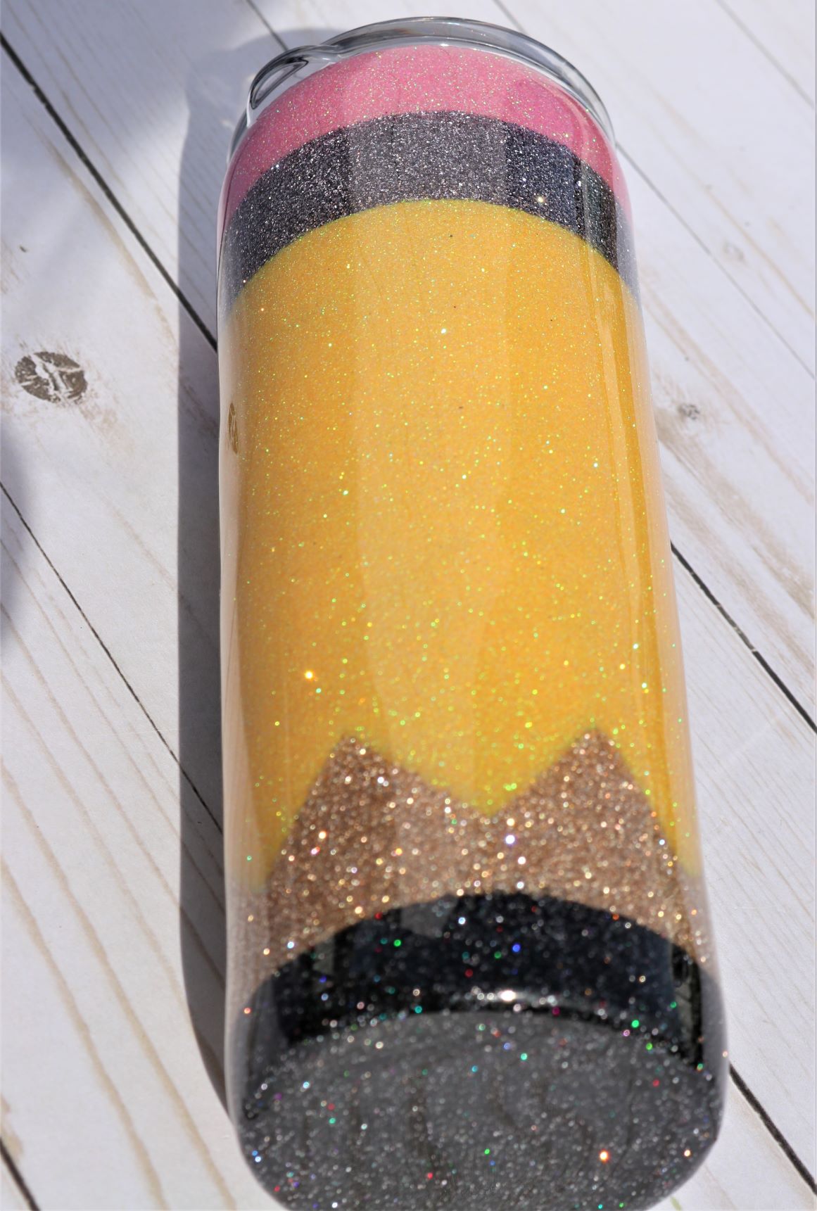 Are you looking for an awesome gift for your child's teacher? Teachers work so hard taking care of 20+ students while teaching them life lessons along with curriculum. Why not show your appreciation with a custom tumbler? These glittery tumblers are so cute and look like a pencil.