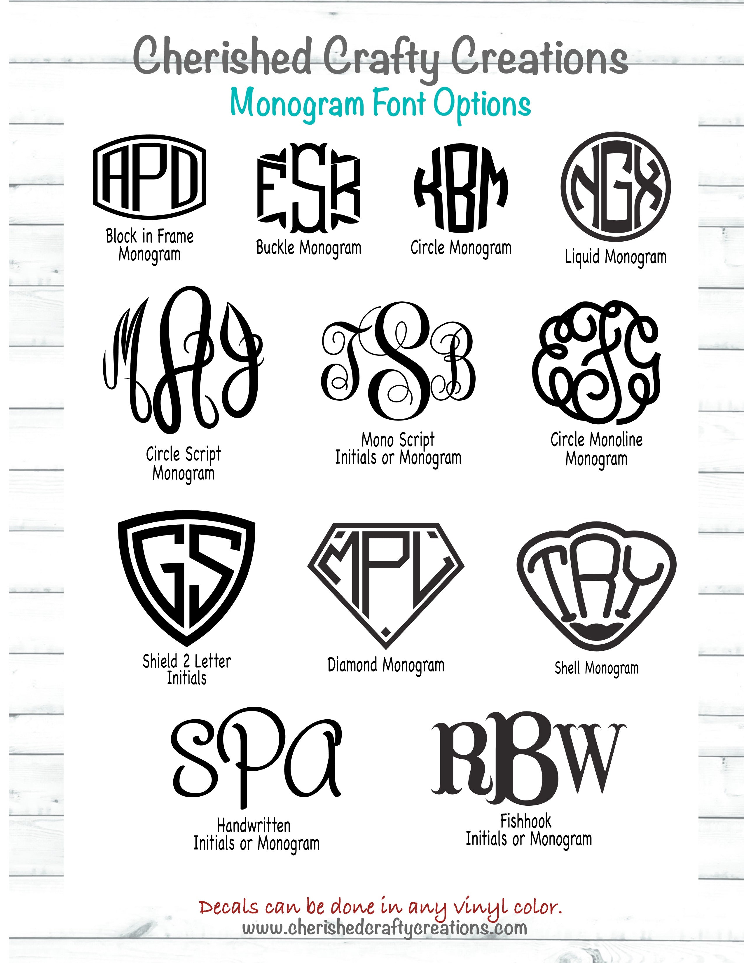 Add a name, monogram, or initials on one side, it can be vertical or horizontal, and any of the decal options available on the "Custom Tumblers" page. The decals can be in any vinyl color that we offer.