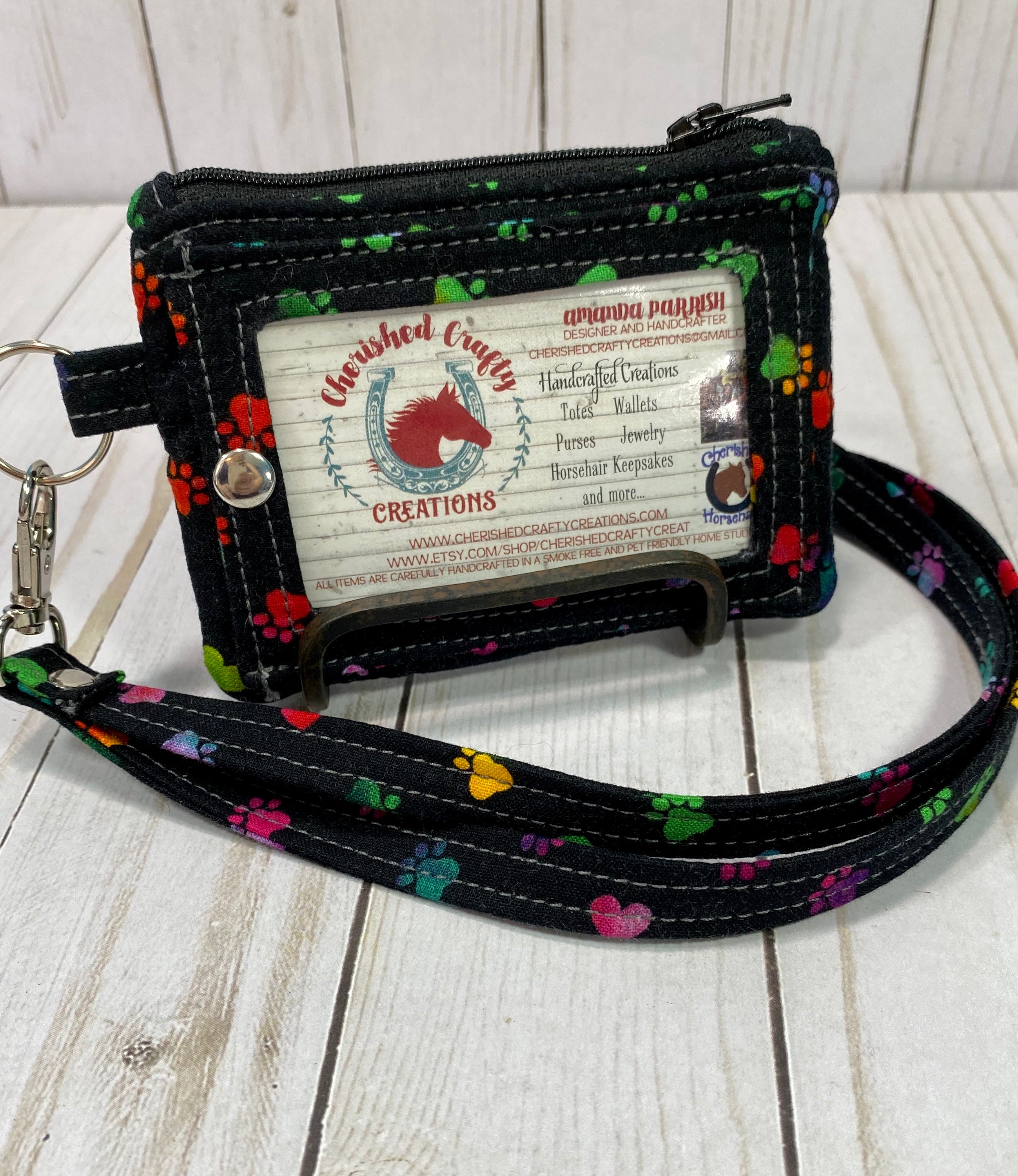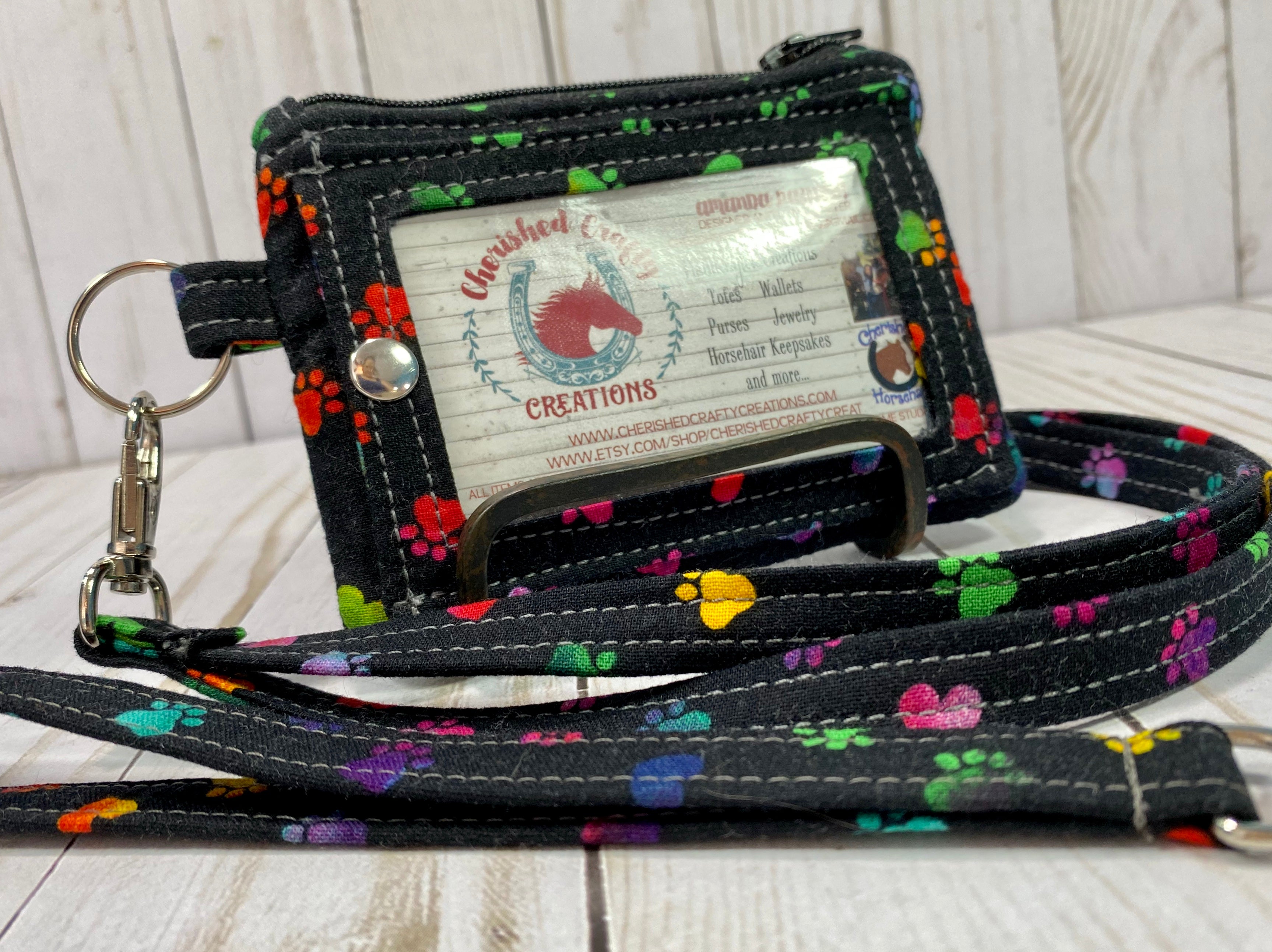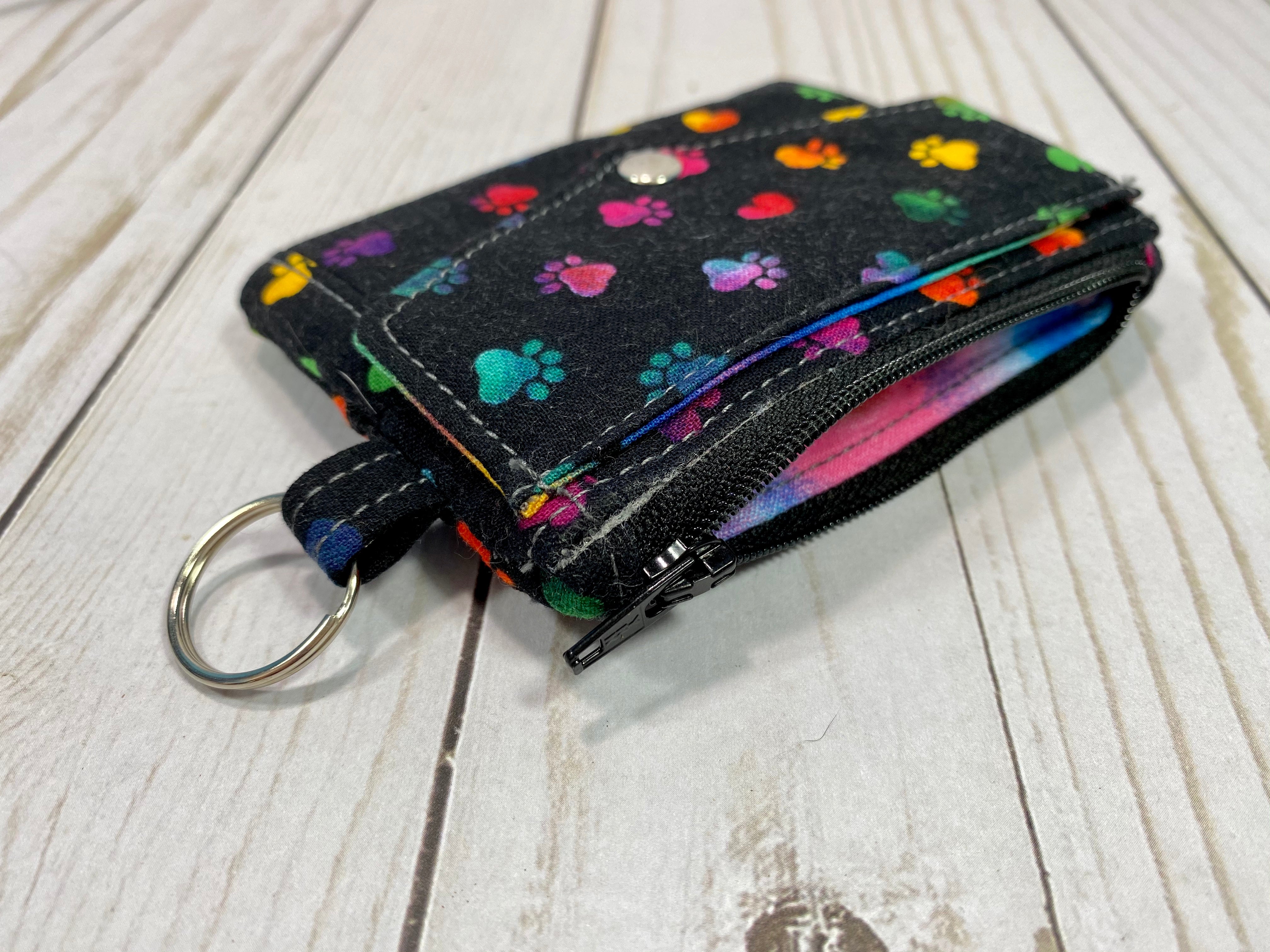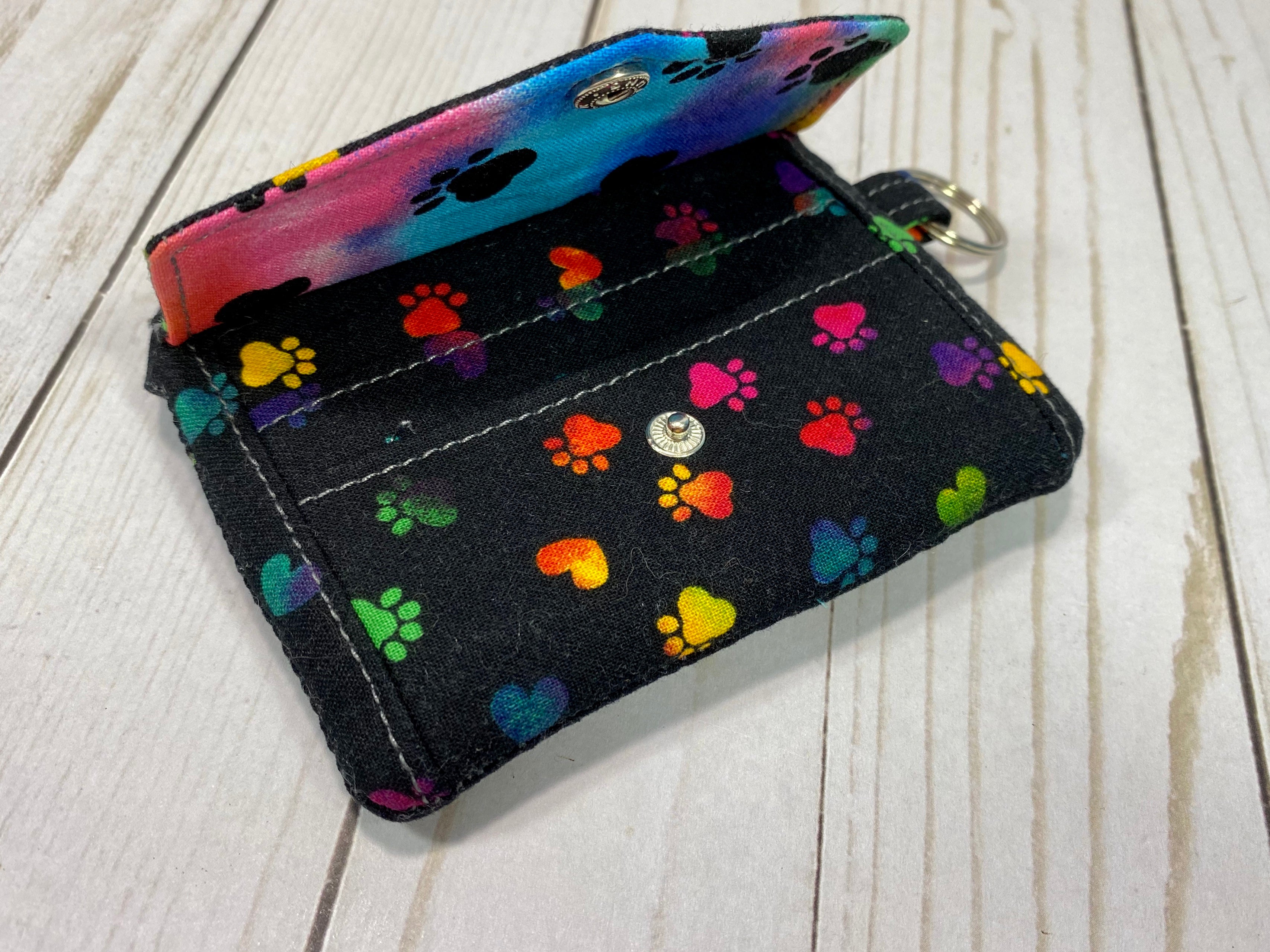 Kristine ID Wallet - Rainbow Paws on Black